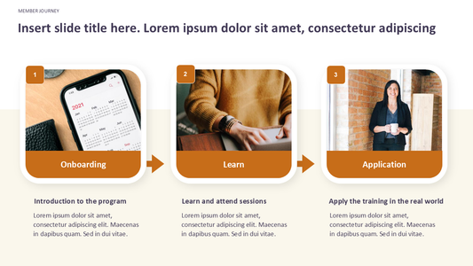 Use this slide template to show the phases your members or customers go through in their journey with you –...