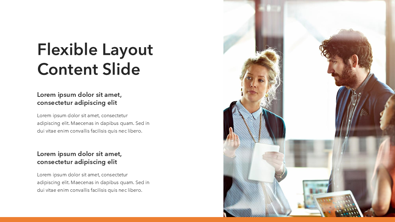 This modern, professional template is made to fit any company, consulting, business, and corporate presentation needs. It has a sleek and contemporary design with a base gray and orange and black highlights.